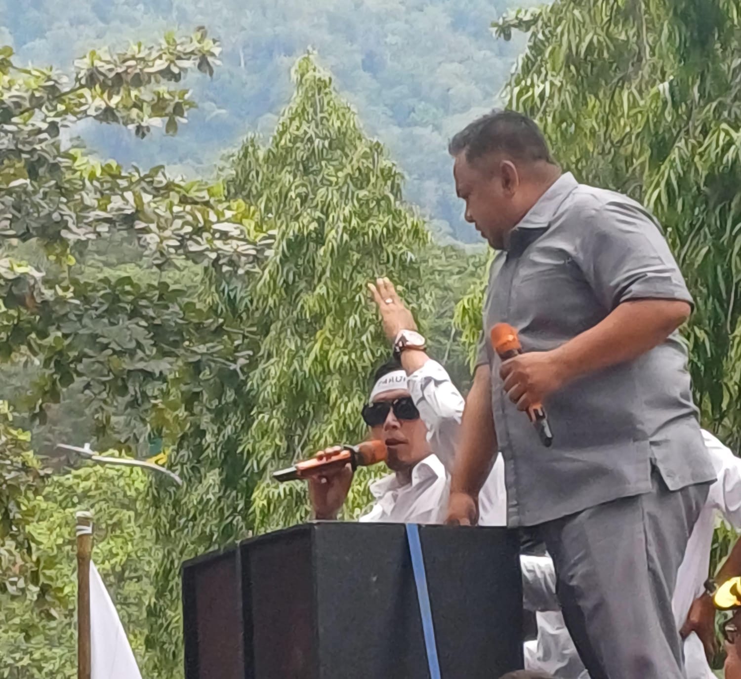 Selanjutnya Pada Aksi Orasi ada Oknum DPRD yang menunjuk sambil berdiri kepada Korlap Aksi Damai, sempat di soraki oleh Para Masa Aksi, padahal Wakil Rakyat Harusnya Pro terhadap Rakyat, terutama Para Gurunya, tidak akan ada pejabat tanpa seorang guru, seharusnya memperlihatkan Adab dan panutan bagi masyarakatnya.ungkapnya