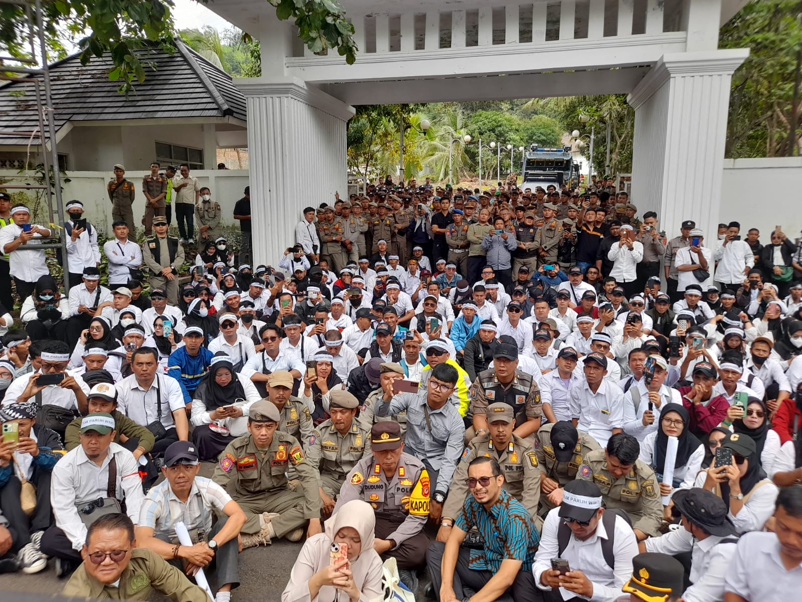 Suaararakyat.info.Sukabumi– Ribuan guru honorer Kabupaten Sukabumi menggelar aksi demonstrasi di Gedung DPRD Kabupaten Sukabumi pada Kamis (30/1/2025), menuntut penghapusan sistem tenaga honorer paruh waktu. Aksi damai ini dijaga ketat oleh aparat kepolisian dari Polres Sukabumi, TNI dari Kodim 0622, dan Satpol PP setempat.