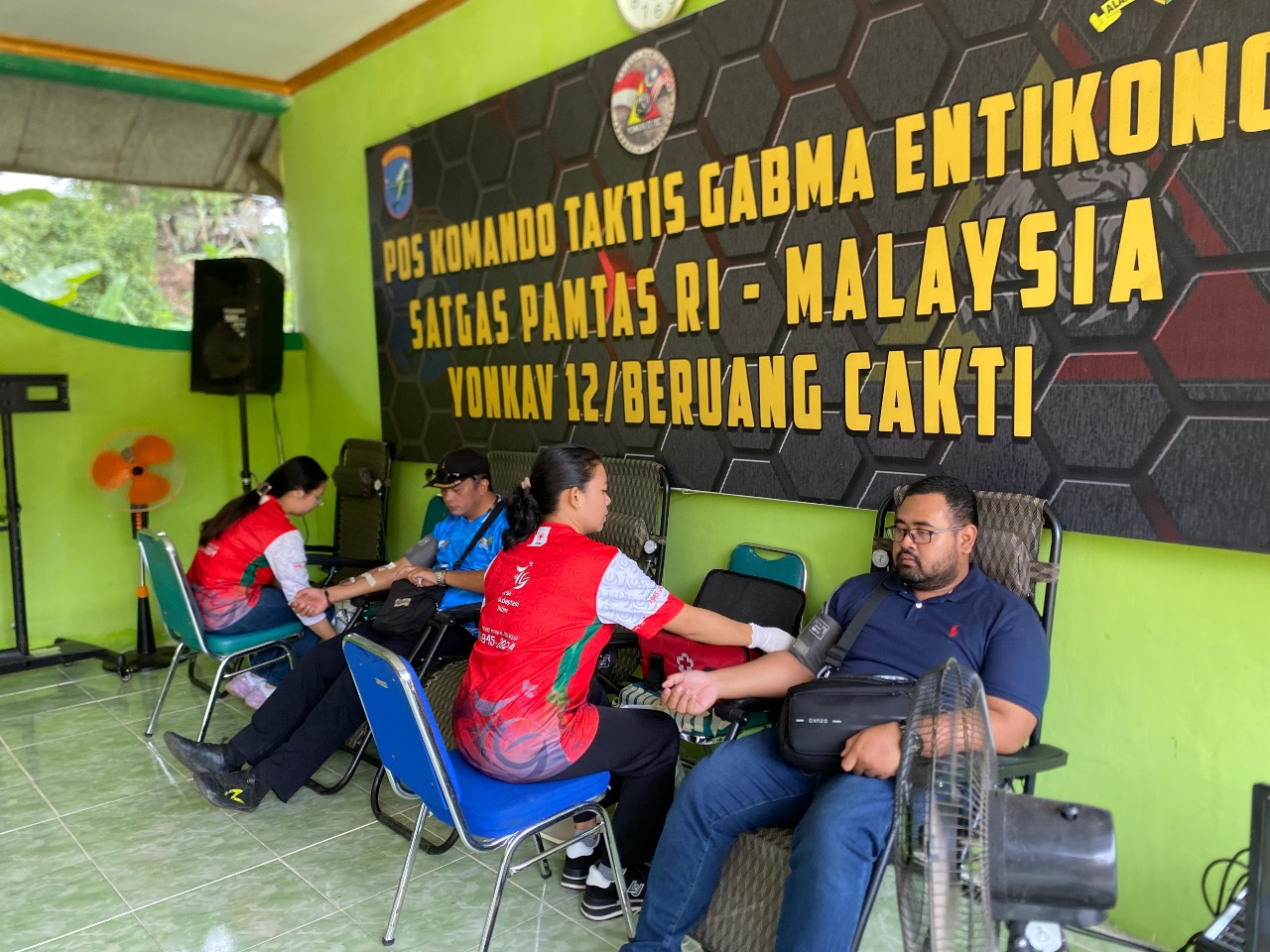 Komandan Satgas (Dansatgas) Pamtas RI-Malaysia Yonkav 12/BC Letkol Kav Andy Setio Untoro, S.H., M.Han. mengatakan, dalam rangka memperingati Hut KAVAD (Kaveleri TNI Aangkatan Darat) ke-75 kami mengadakan Acara Pengobatan Massal Gratis, Donor darah dan juga pemberian makan bergizi gratis kepada pelajar sekolah di daerah perbatasan mulai dari pos paling ujung yaitu Pos Gabma Temajuk sampai dengan Pos Kotis Gabma Entikong .