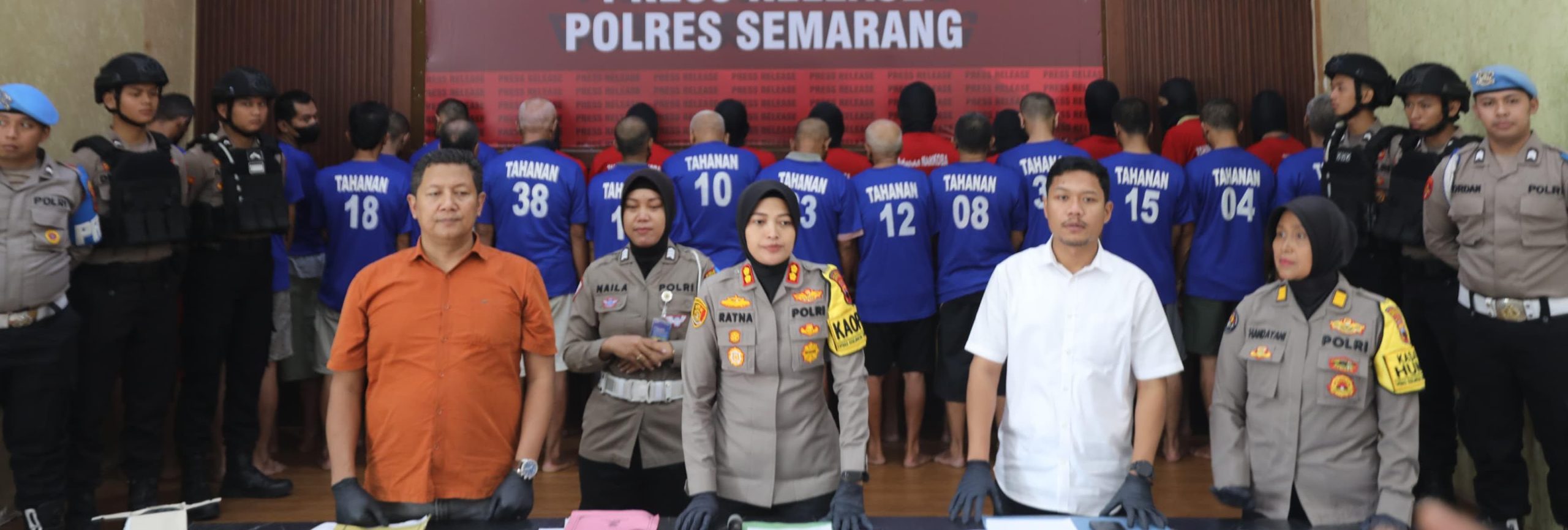 Bertempat di aula Condrowulan Polres Semarang, Kapolres Semarang AKBP Ratna Quratul Ainy SIK. MSi., didampingi Kasat Reskrim, Kasat Narkoba dan Kasi Humas Polres, menyampaikan langsung kegiatan Konfrensi Pers Cipta kondisi tersebut.