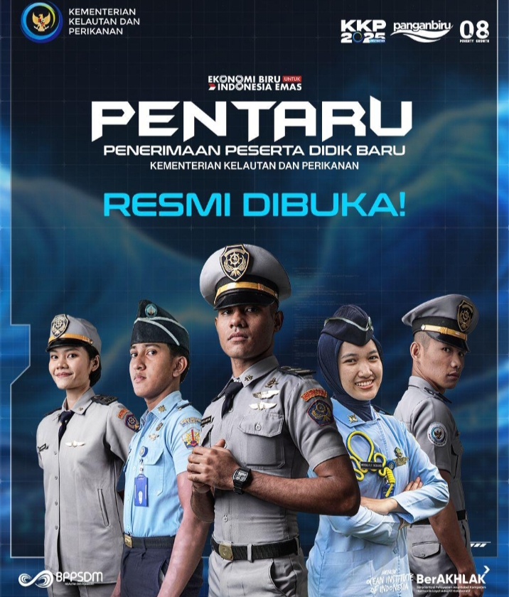 Suararakyat.info.Jakarta-Kementerian Kelautan dan Perikanan (KKP) melalui Badan Penyuluhan dan Pengembangan Sumber Daya Manusia Kelautan dan Perikanan (BPPSDM KP) kembali membuka pendaftaran Penerimaan Peserta Didik Baru (PENTARU) tahun 2025. Program ini ditujukan bagi calon peserta pendidikan vokasi kelautan dan perikanan, baik di tingkat menengah maupun perguruan tinggi.