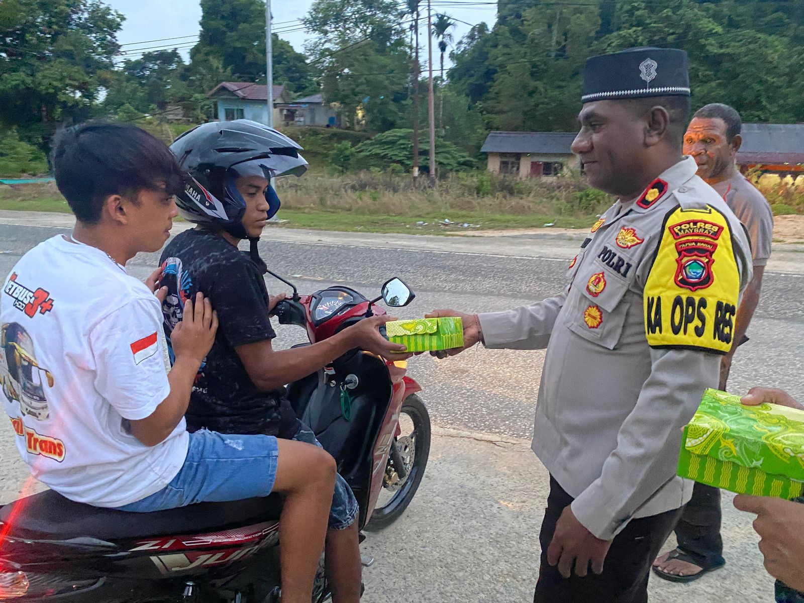 Maybrat – Dalam semangat berbagi di bulan suci Ramadan, Polres Maybrat bersama insan media menggelar aksi sosial berbagi takjil kepada masyarakat. Kegiatan ini berlangsung di depan Mapolres Maybrat, dihadiri oleh Kapolres Maybrat, Kompol Ruben Obed Kbarek, S.I.K., didampingi Pejabat Utama (PJU) Polres serta para wartawan yang bertugas di wilayah tersebut. Pada Kamis (13 Maret 2025).