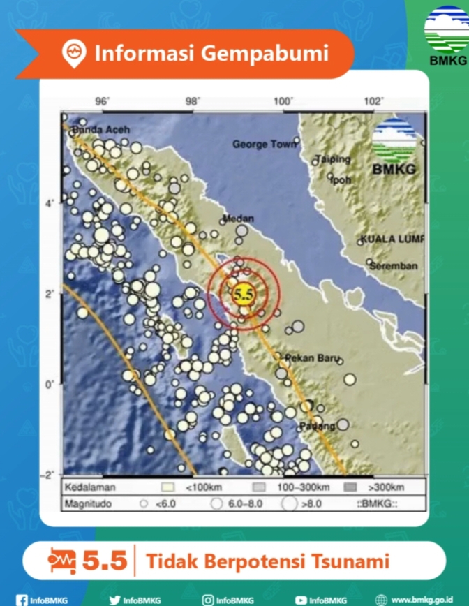 BMKG mengingatkan agar warga tetap tenang dan mengikuti informasi resmi dari sumber terpercaya. Untuk informasi lebih lanjut, masyarakat dapat mengakses situs resmi BMKG di https://inatews.bmkg.go.id/.