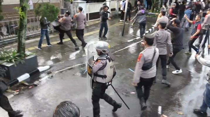 Andri sangat menyayangkan sikap pengamanan dari aparat Kepolisian yang ketika chaos terjadi, tidak bisa membedakan mana massa aksi dan bukan. “Siapapun jadi kena (korban), saya sangat menyesalkan adanya tindakan represif ini dari polisi,” Pungkas Andri.