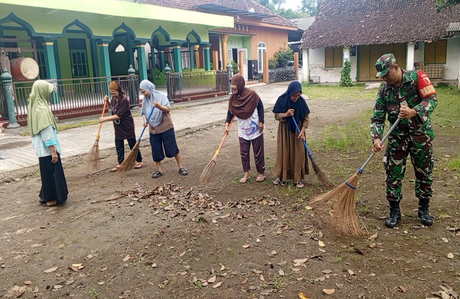 Suararakyat.info.Blitar-Menjelang perayaan Hari Raya Idul Fitri 1446 H Babinsa Tlogo Koramil 0808/03 Kanigoro Kodim 0808/Blitar Sertu Yudhi, bersama warga, menggelar kegiatan gotong royong membersihkan lingkungan Masjid Darussalam bertempat di Desa Tlogo Kec. Kanigoro Kab. Blitar. Kegiatan ini dilakukan sebagai bentuk kepedulian terhadap kebersihan tempat ibadah serta dalam rangka menyambut pelaksanaan Sholat Idul Fitri 1446 H, Minggu (30/3/2025).