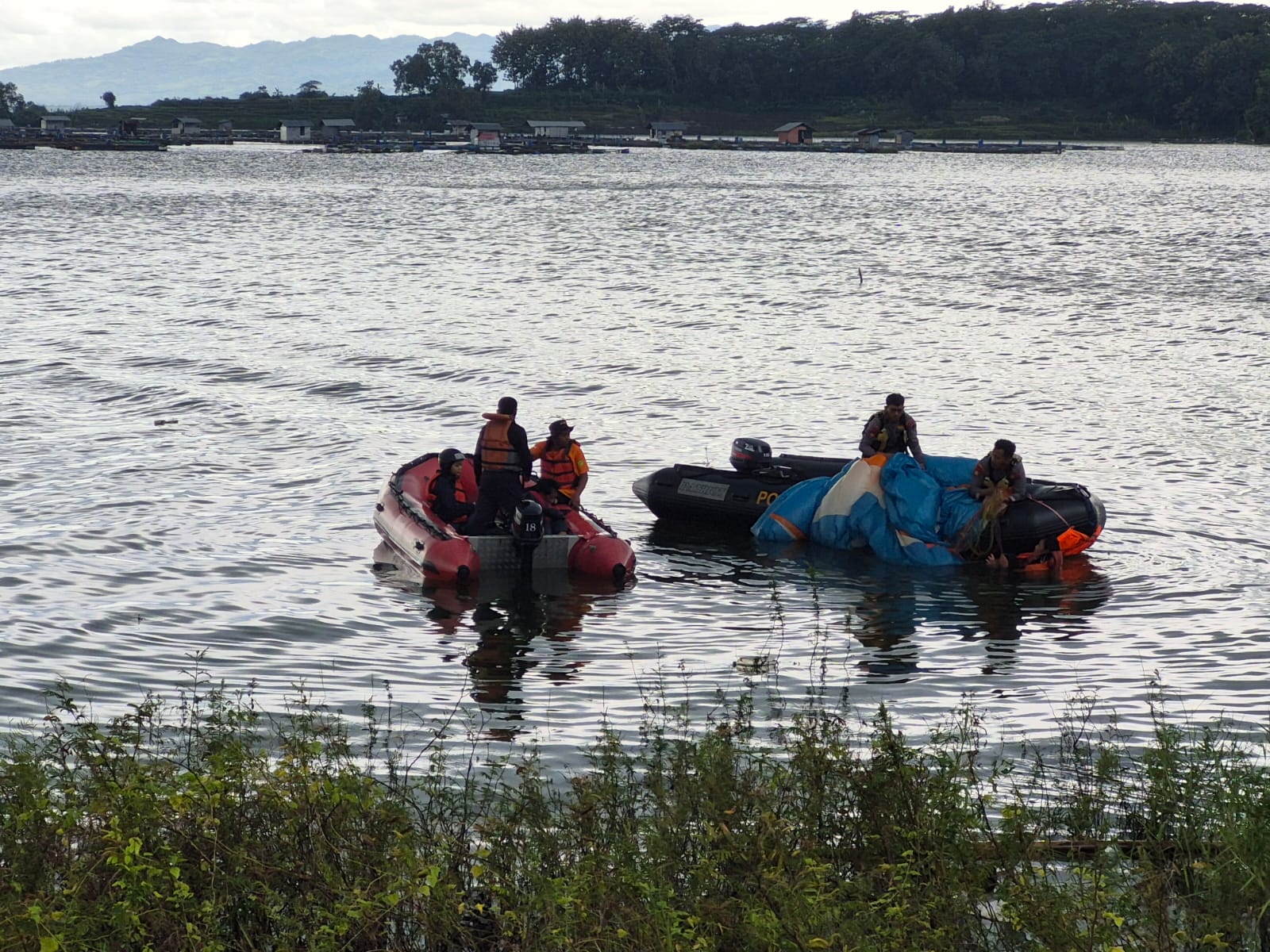 Dalam waktu lima menit setelah kejadian, tim SAR Polairud langsung mengerahkan perahu karet menuju lokasi jatuhnya paralayang, sehingga tim berhasil mengevakuasi korban dalam keadaan selamat. Pada pukul 14.55 WIB, keduanya telah dibawa ke daratan dan segera mendapatkan penanganan medis dari tim kesehatan setempat.