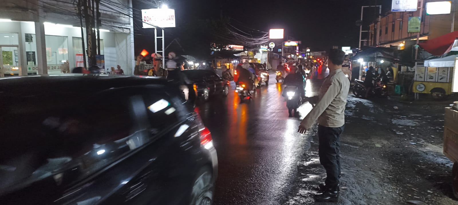 Dari Pantauan wartawan suara rakyat info di pertigaan Cidahu, anggota polantas sukabumi mengatur lalu lintas.