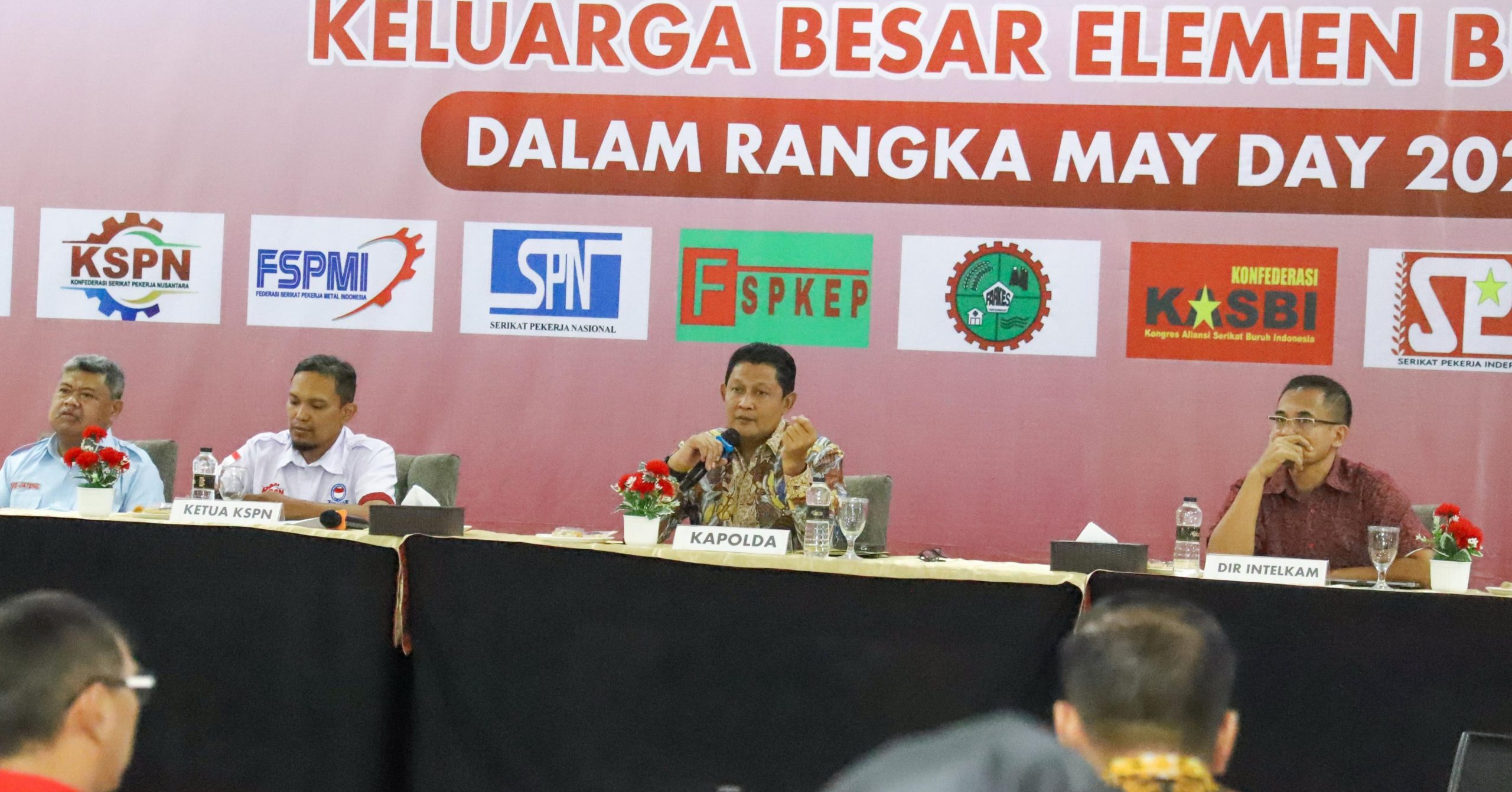 Menjelang peringatan Hari Buruh yang jatuh pada 1 Mei mendatang, Kapolda berharap kegiatan penyampaian aspirasi dapat berlangsung secara kondusif. Kapolda berpesan seluruh peserta dapat mengikuti kegiatan dengan tertib dan waspada jangan sampai penyampaian aspirasi ditumpangi pihak lain.