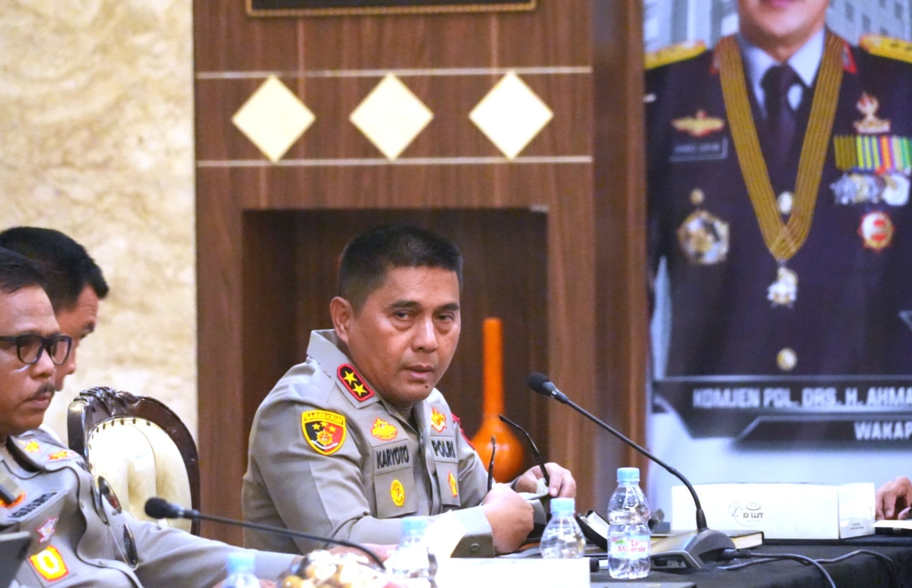 Rapat koordinasi ini digelar di Aula Gedung Promoter, Polda Metro Jaya, Jakarta Selatan, Senin (28/4/2025). Rapat koordinasi ini turut dihadiri jajaran pejabat utama Mabes Polri dan pemerintah daerah.