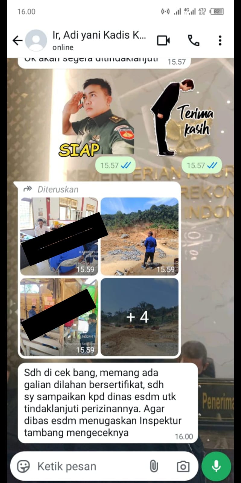 Informasi terkait Hal ini telah disampaikan kepada Kepala Dinas Lingkungan Hidup dan Kehutanan Provinsi Kalimantan Barat Ir. H. Adi Yani, M.H., melalui pesan singkat WhatsApp,”terang Kadis DLHK Kalbar menjawab lokasi tersebut sudah mengantongi izin SHM. Dan Soala.perizinan masih kita minta pada pihak ESDM pertambangan dan saya juga akan segera perintahkan Kepala KPH cek ya bang,”jawabnya Kadis DLHK Provinsi pada awak media Jumat 2 Mei 2025 Wib.