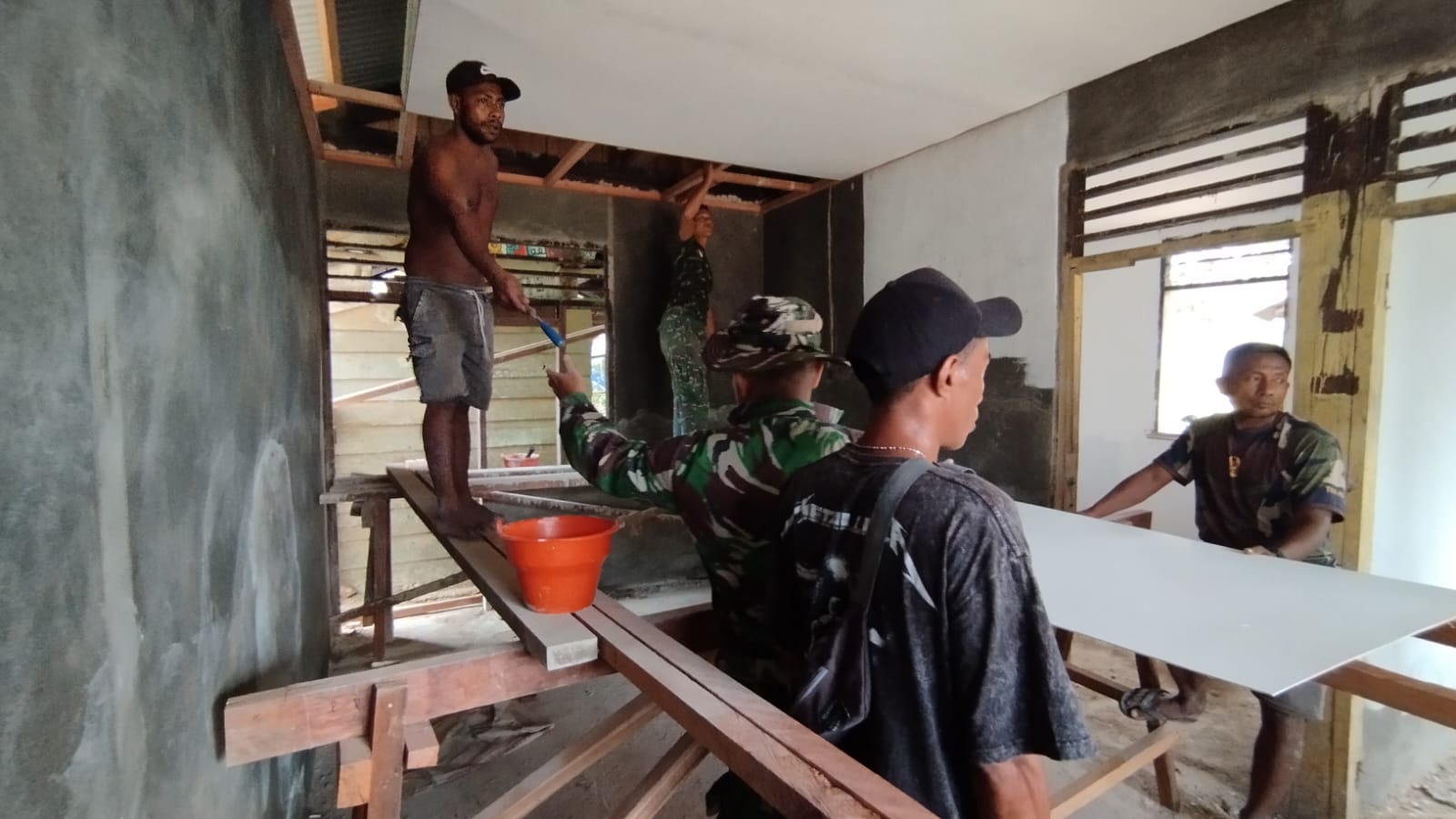 Seperti rumah milik Bapak Hiskia Kalawen sudah memasuki tahap pemasangan plafon. Menurut Pawas TMMD bahwa Plafon-plafon tersebut disusun dengan rapi dan dipasang dengan sangat hati-hati agar tak merusak material bangunan, diperlukan kegotong-royongan dan keterampilan dalam semua aktivitas pembangunan TMMD. Karena, dengan diterapkannya hal tersebut, maka pekerjaan akan lebih ringan dikerjakan.