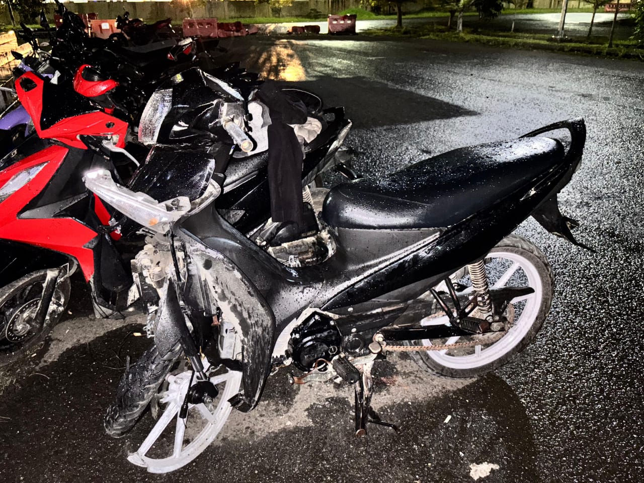 1 unit sepeda motor Yamaha Vega Force warna hitam yang digunakan pelaku san 1 unit sepeda motor Kawasaki D-Tracker warna hitam milik saksi