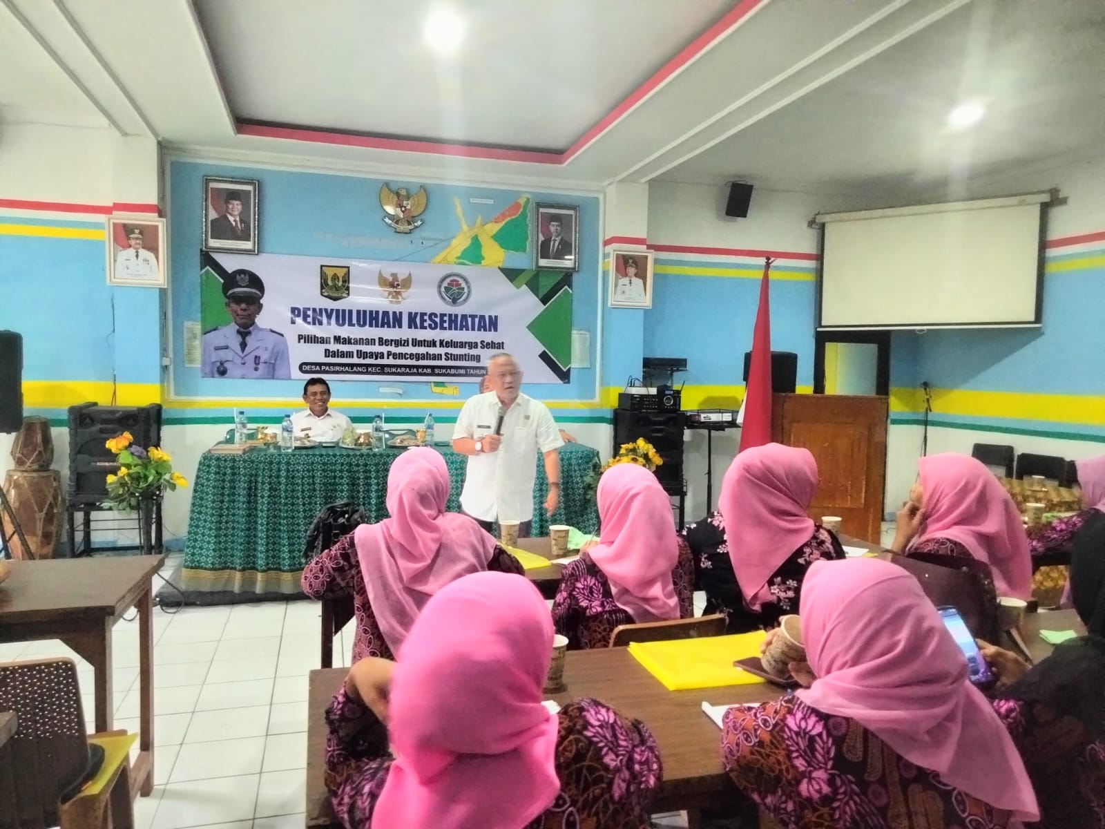 Pemdes (Pemerintah Desa) Pasirhalang gandeng Kecamatan Sukaraja, Puskesmas dan PLKB Kecamatan Sukaraja lakukan Penyuluhan Kesehatan Pilihan Makanan Bergiji untuk keluarga Sehat dalam Upaya Pencegahan Stunting. Bersama Puluhan Kader Posyandu. Bertempat diaula desa pada Rabu (14/05/2025).