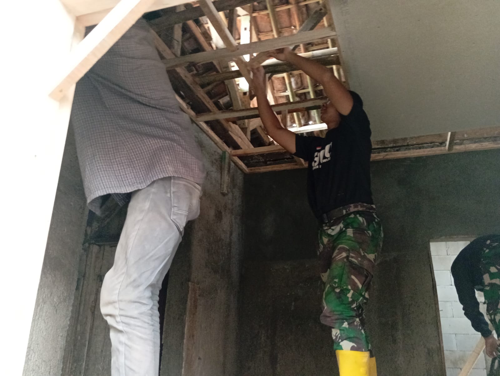 Hari ini, anggota Satgas TMMD melakukan percepatan dalam pemasangan plafon di rumah Bapak Jejen, disertai dengan perbaikan lainnya seperti dinding, atap, dan elemen struktural lain yang diperlukan untuk menunjang kenyamanan dan keamanan bangunan.