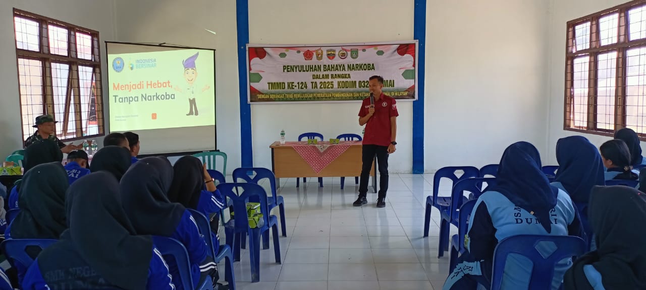 Dalam upaya membentengi generasi muda dari ancaman bahaya narkoba yang kian meresahkan, Badan Narkotika Kota (BNK) Dumai bekerja sama dengan Kodim 0320/Dumai menyelenggarakan kegiatan penyuluhan bertema “Bahaya Narkoba bagi Generasi Muda dan Masyarakat” di Kelurahan Bukit Kayu Kapur. Kegiatan ini merupakan bagian integral dari rangkaian TNI Manunggal Membangun Desa (TMMD) ke-124, yang bertujuan memperkuat sinergi antara TNI dan rakyat dalam pembangunan fisik dan non-fisik.