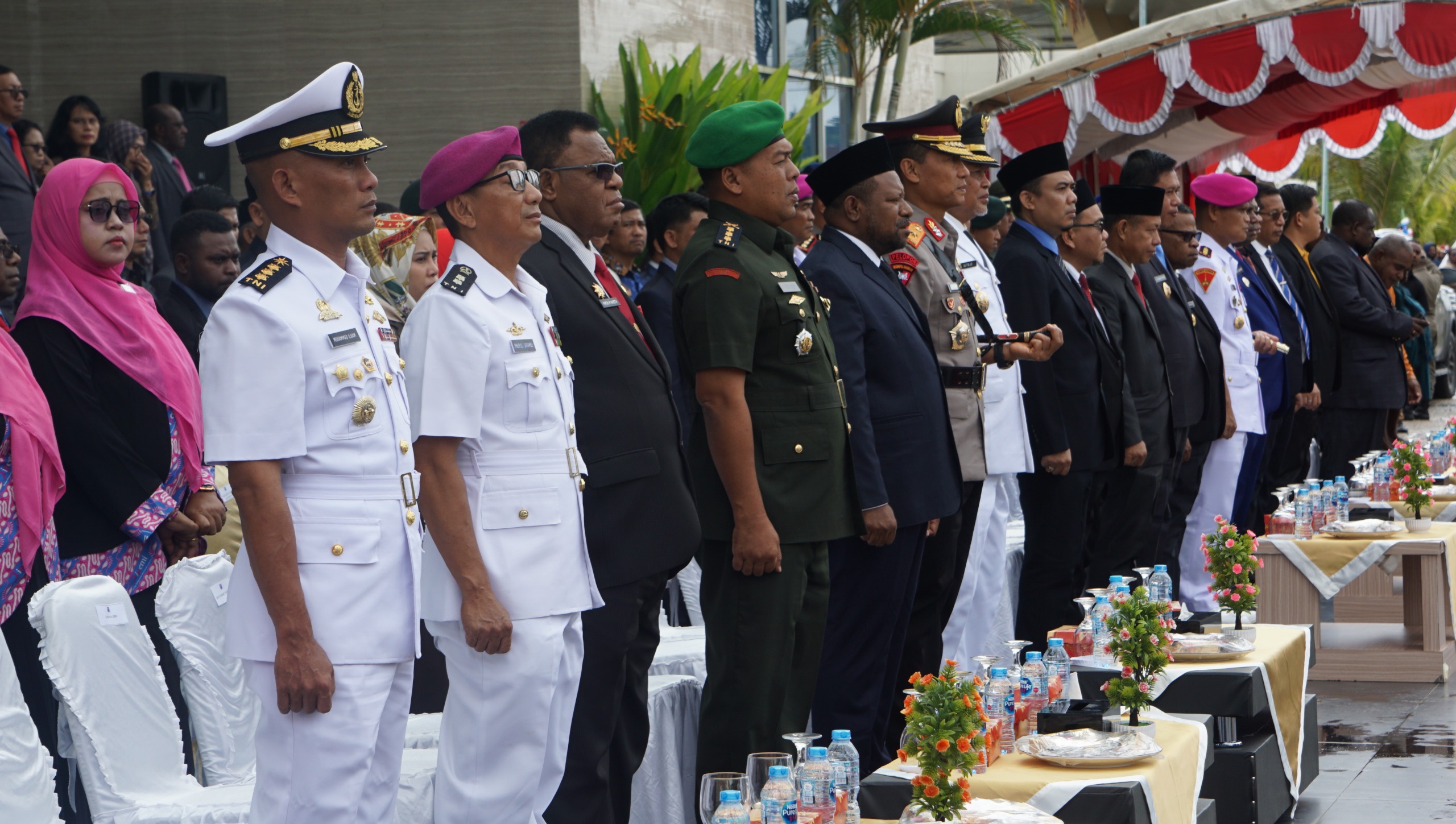 Kabupaten Sorong (16/6/25) – Dalam rangka memperingati Hari Ulang Tahun (HUT) ke-59 Kabupaten Sorong, Asisten Personel (Aspers) Komandan Pangkalan Utama TNI Angkatan Laut (Danlantamal) XIV Sorong, Kolonel Laut (P) Muhammad Ilham Agus, M.Tr.Opsla., menghadiri upacara yang berlangsung di halaman Aimas Convention Centre (ACC), Jln. Sorong, Klamono, Km. 23, Kelurahan Aimas, Distrik Aimas, Kabupaten Sorong, Papua Barat Daya. (14/06)
