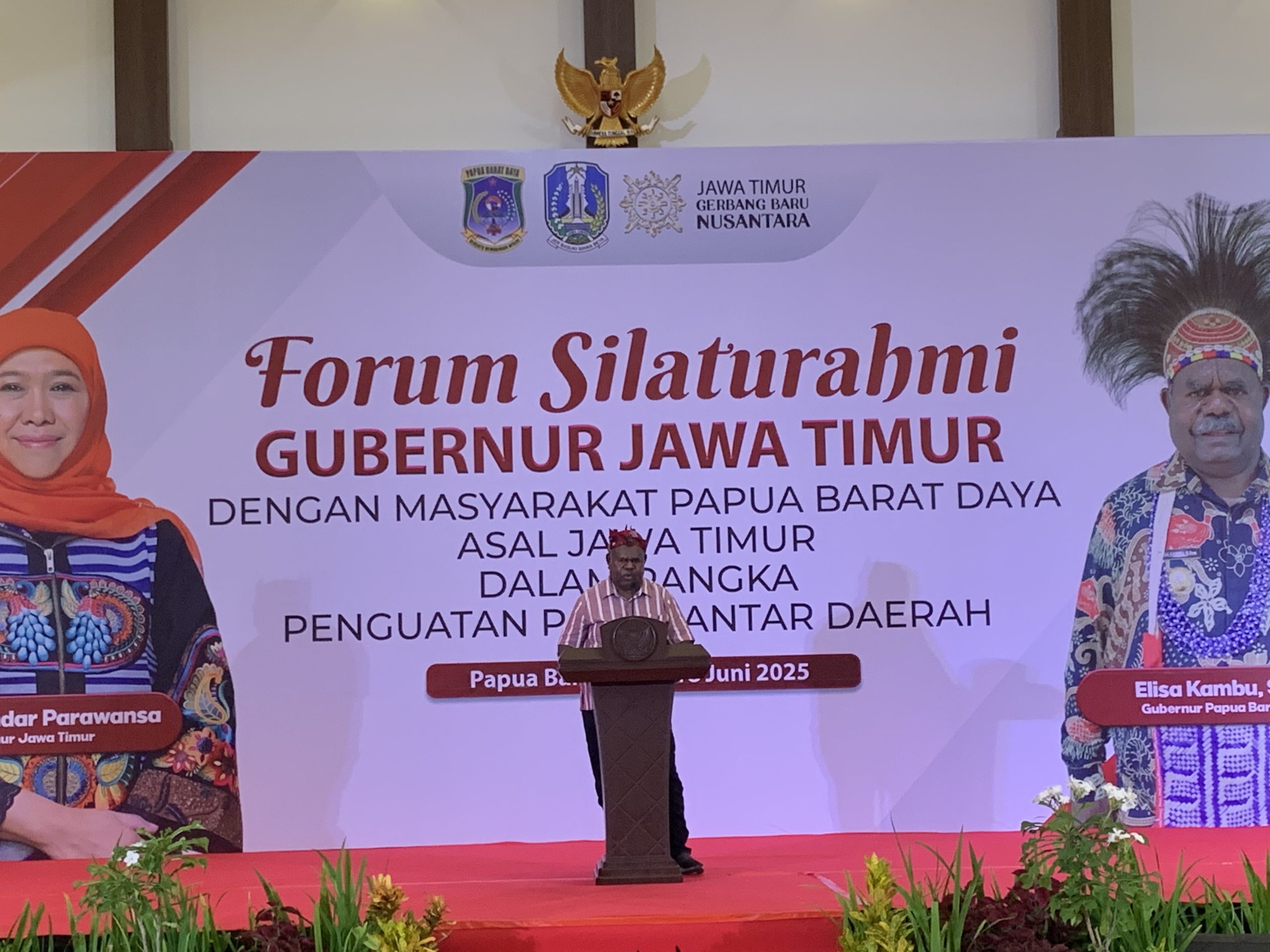 “Kami ini provinsi baru, kecil secara wilayah, tapi besar dalam harapan. Dan kehadiran saudara-saudara dari Jawa Timur adalah bukti bahwa Papua tidak pernah sendiri,” ujarnya.