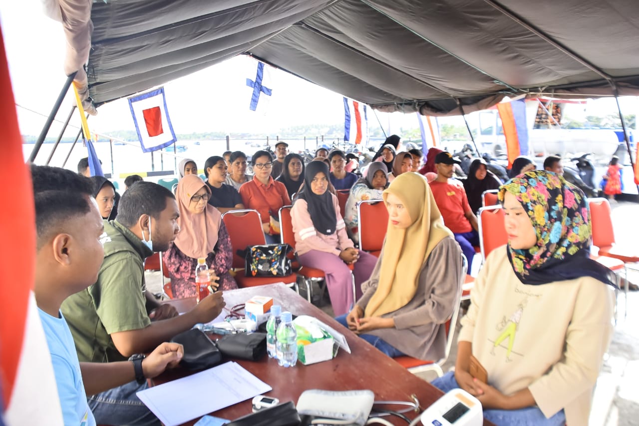 Selain pelayanan kesehatan, kegiatan ini juga diisi dengan penyerahan sembako secara simbolis kepada masyarakat yang mengikuti pengobatan umum. Masyarakat terlihat berbondong-bondong mendatangi dermaga sejak pagi, menandakan tingginya antusiasme terhadap pelayanan yang digelar.