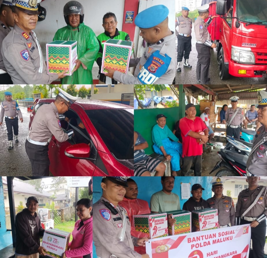 Hari Sembilan Ops Simpatik Salawaku, Polda Maluku Tegur Pelanggar Lalulintas dan Bagikan Bingkisan Hari Bhayangkara