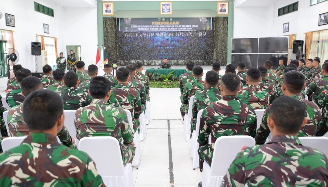 Suararakyat.info.Pekanbaru– Danrem 031/Wira Bima, Brigjen TNI Sugiyono memimpin langsung kegiatan Pembukaan Kader Pelatih Pencak Silat Militer (PSM) Tersebar Kodam I/BB Tahun 2025, yang berlangsung di Aula Ahmad Yani Yonarhanud 13/PBY, Jalan Kaharuddin Nasution, Simpang Tiga, Kota Pekanbaru, Senin (23/6/2025).