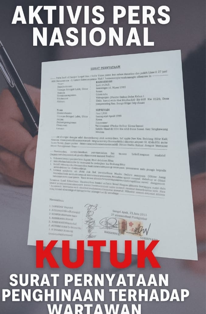 Surat pernyataan yang dibuat oleh oknum aparat Polsek Sungai Ayak yang melarang wartawan meliput peristiwa di lokasi, disebut sebagai bentuk intimidasi struktural. Hal ini menciptakan ketakutan sistematis terhadap insan pers dan mengancam kebebasan memperoleh informasi publik.