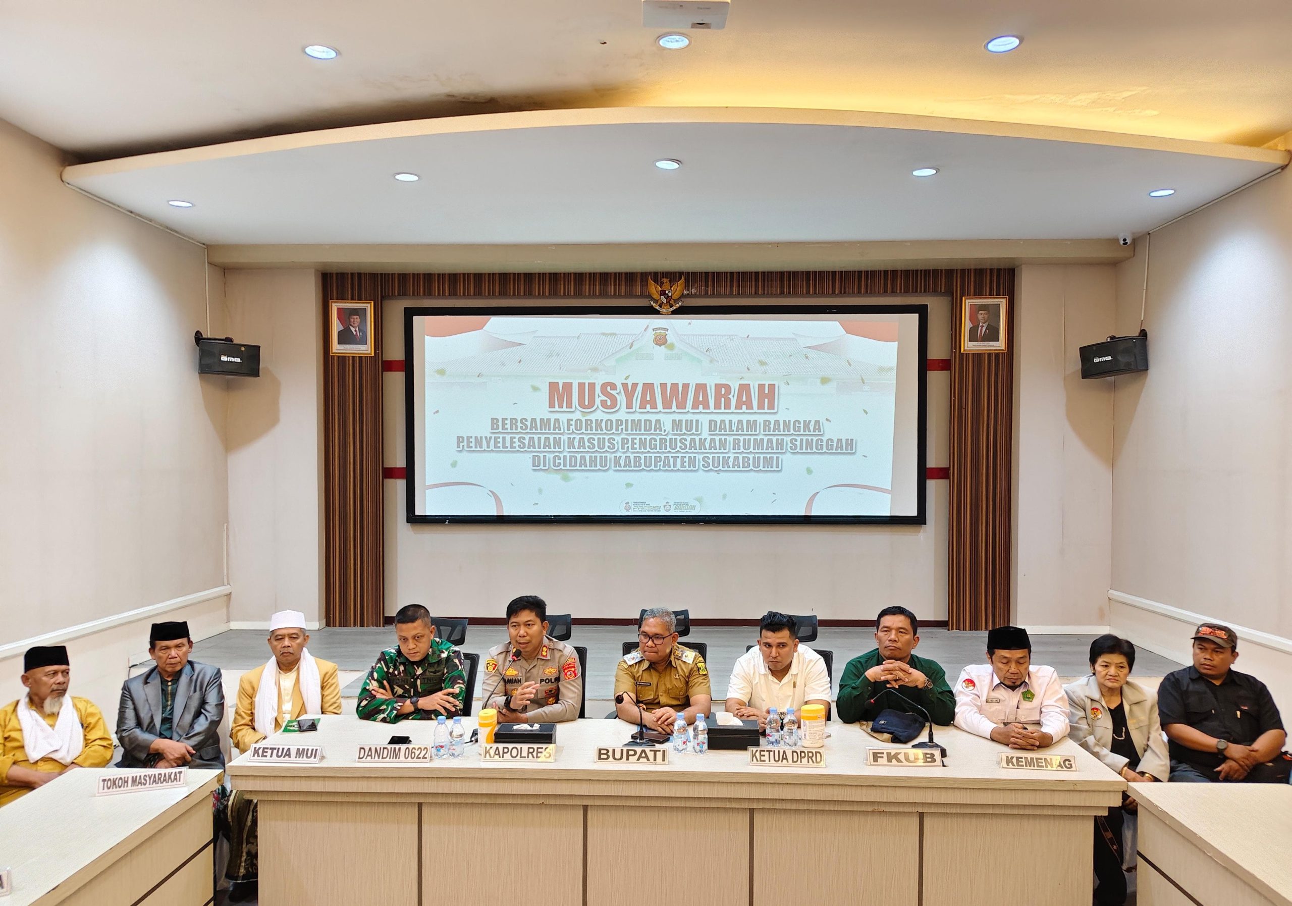Suararakyat.info.Sukabumi-menyikapi insiden pembubaran kegiatan retret pelajar Kristen di Desa Tangkil, Kecamatan Cidahu, Polres Sukabumi bersama Forum Koordinasi Pimpinan Daerah (Forkopimda) Kabupaten Sukabumi, Majelis Ulama Indonesia (MUI), serta sejumlah tokoh lintas agama menggelar musyawarah bersama di Mapolres Sukabumi pada Senin (30/6/2025).