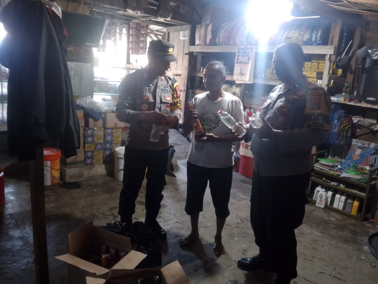 Dalam kegiatan tersebut petugas melakukan pengecekan di beberapa lokasi toko kelontong yang diduga menjual miras.