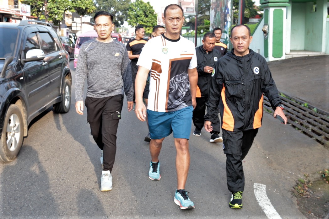 Komandan Kodim 0607 /Kota Sukabumi apel pagi dan jogging bersama anggota makodim.