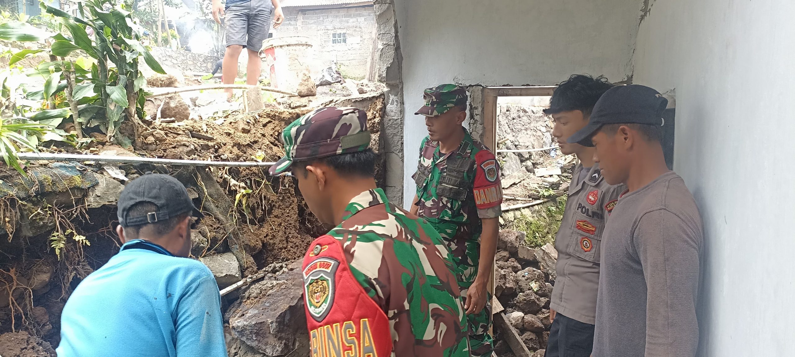 Meninjau lokasi rumah warga yang rusak akibat bencana alam di Kampung Jabon Depok RT 03 RW 04, Desa Girijaya, Kecamatan Cidahu, Kabupaten Sukabumi.