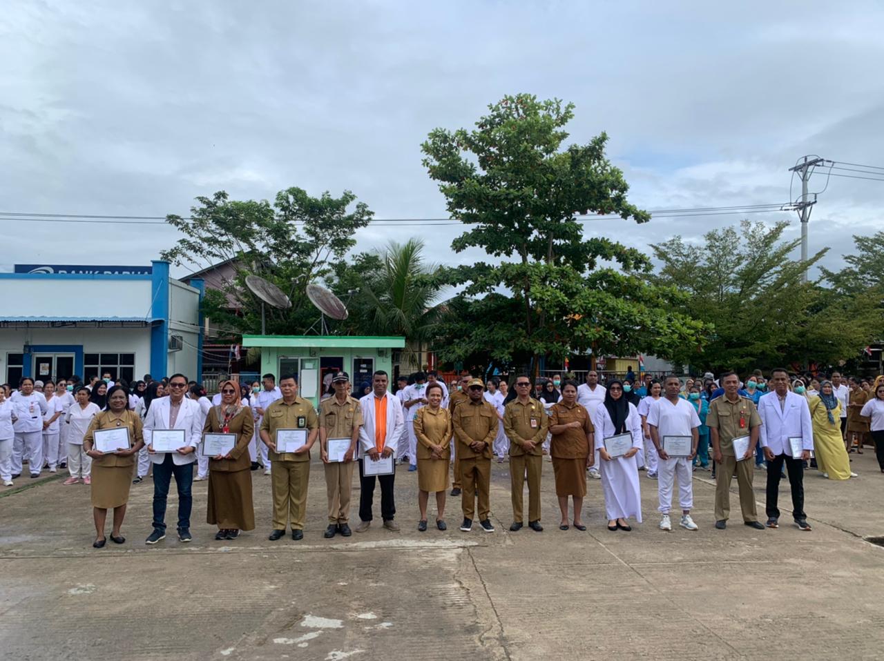 Penyerahaan Penghargaan Diberikan Langsung Oleh Walikota Sorong Septinus Lobat Dalam Apel Yang Berlangsung Di Halaman RSUD Sele Be Solu Kota Sorong Papua Barat Daya.