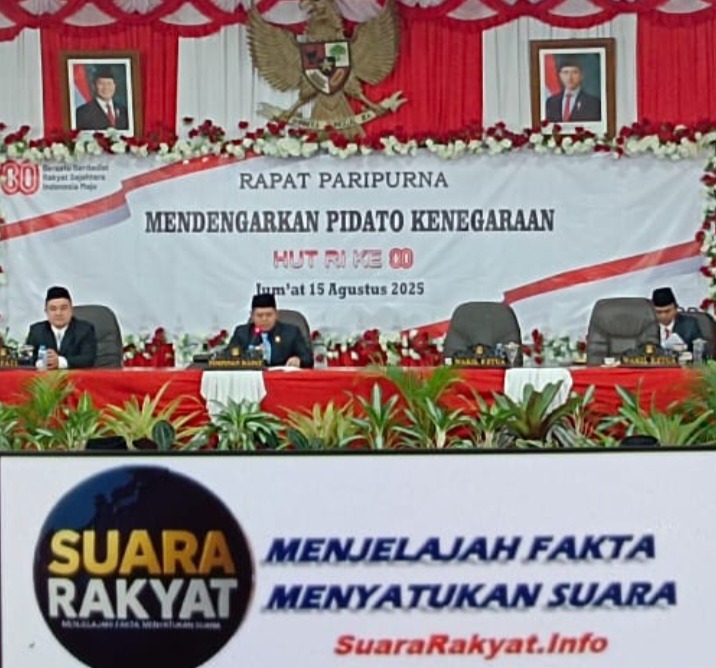 SUARARAKYAT.info|| Bangka- DPRD Kabupaten Bangka menggelar rapat paripurna dalam rangka Mendengarkan Pidato Kenegaraan Hari Ulang Tahun Republik Indonesia yang ke-80 bertempat di Ruang Paripurna Gedung DPRD Kabupaten Bangka, Jum’at (15/08/2025).