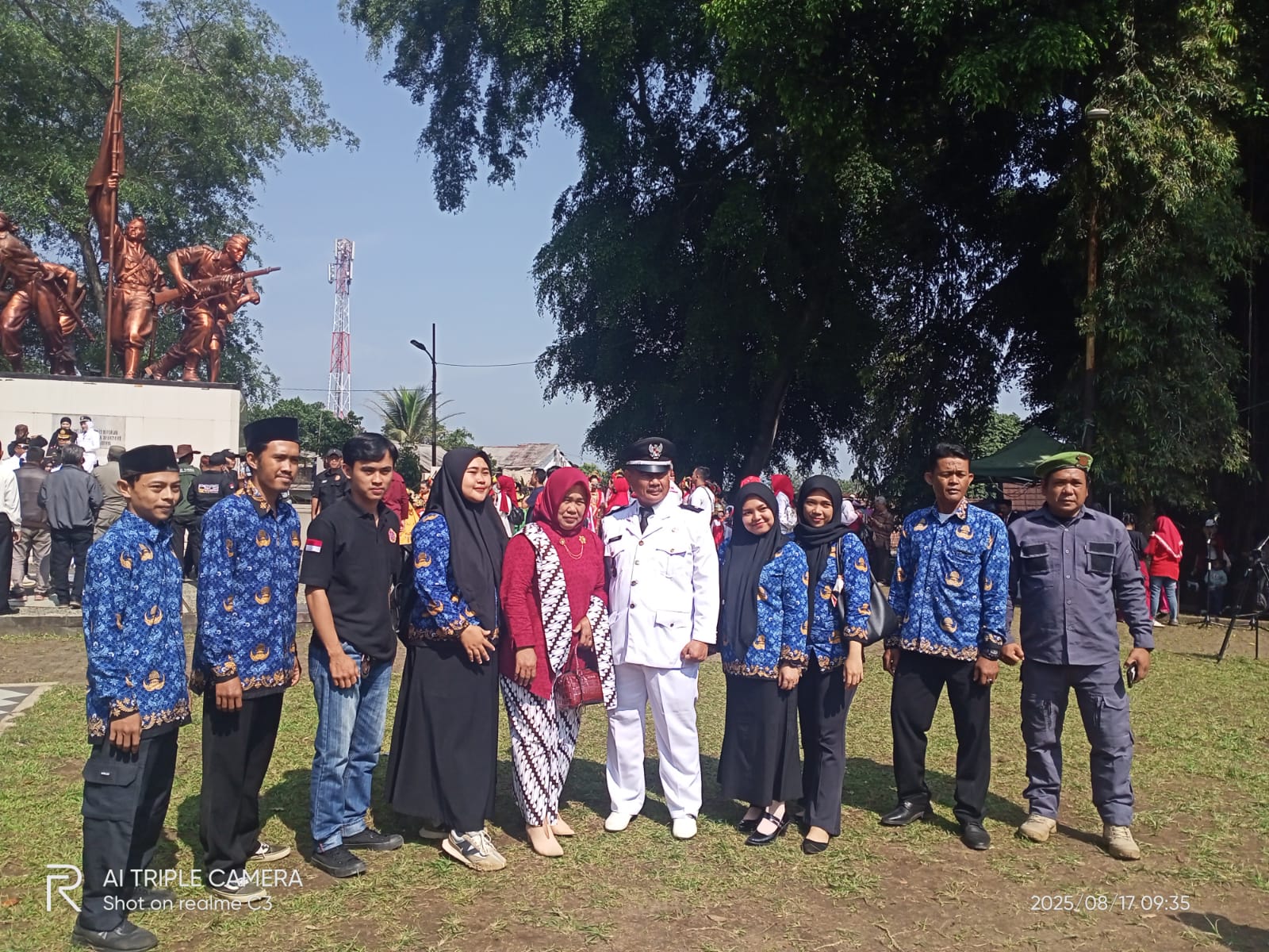 Kepala Desa Babakan Jaya, E. Benno, bersama jajaran perangkat desa hadir secara langsung mengikuti jalannya upacara yang berlangsung khidmat. Kehadiran mereka menjadi bentuk penghormatan sekaligus wujud syukur atas perjuangan para pahlawan yang telah merebut kemerdekaan Indonesia dari tangan penjajah.