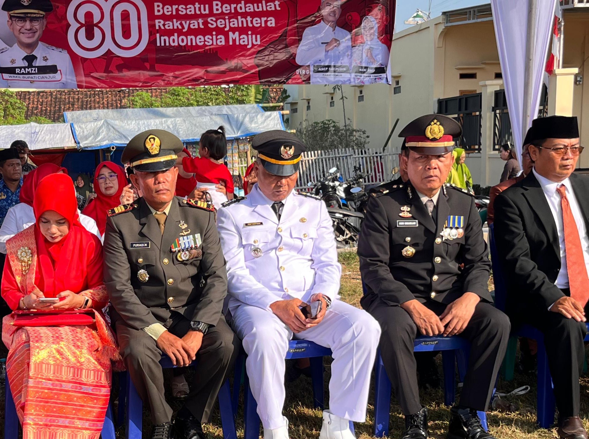Selanjutnya, detik-detik proklamasi yang berlangsung pukul 09.00 WIB disambut dengan hening cipta, pembacaan teks proklamasi, Pancasila, serta UUD 1945. Dalam amanatnya, Camat Cidaun menyampaikan pentingnya menghayati perjuangan para pahlawan bangsa dan menegaskan bahwa kemerdekaan yang telah diraih harus diisi dengan kerja keras, kebersamaan, dan semangat gotong royong demi membangun Cidaun yang lebih maju dan sejahtera.