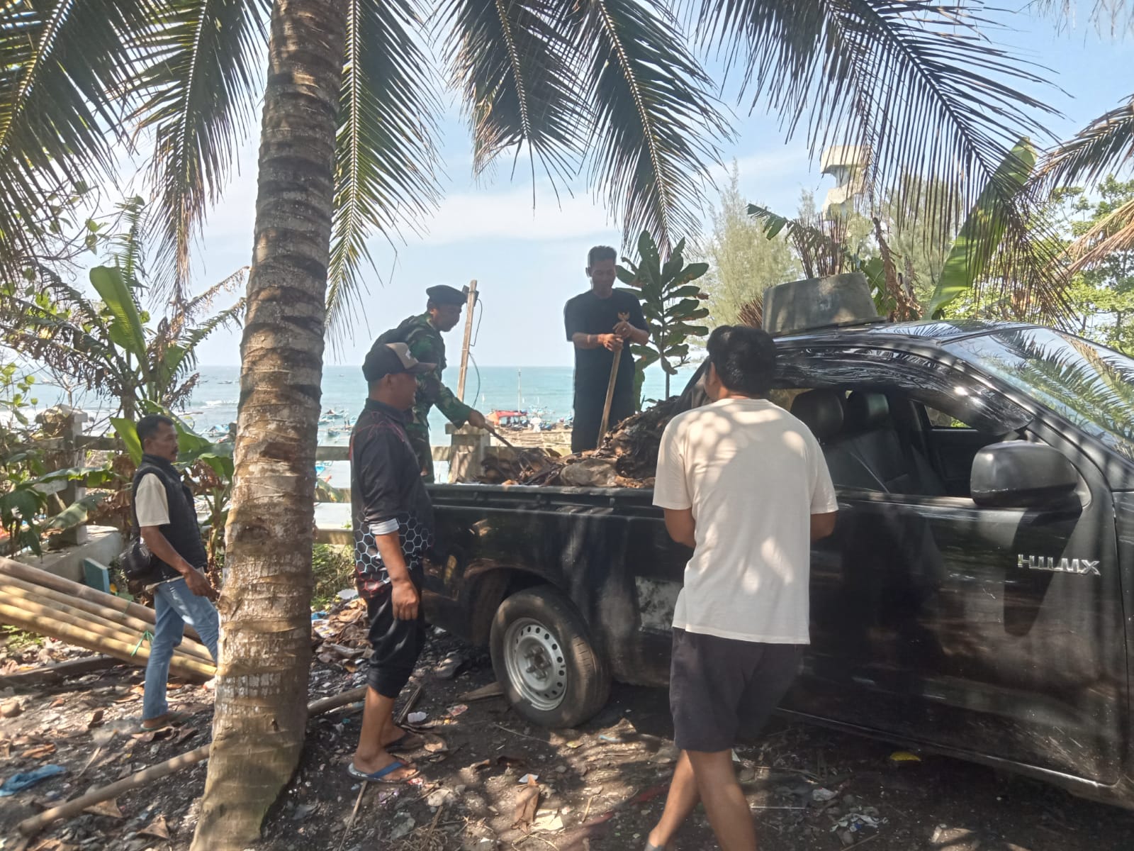 Lanal Bandung, Posal Ujung Genteng, dan Babinpotmar Cidaun Gelar Aksi Bersih-Bersih di Pelabuhan Jayanti