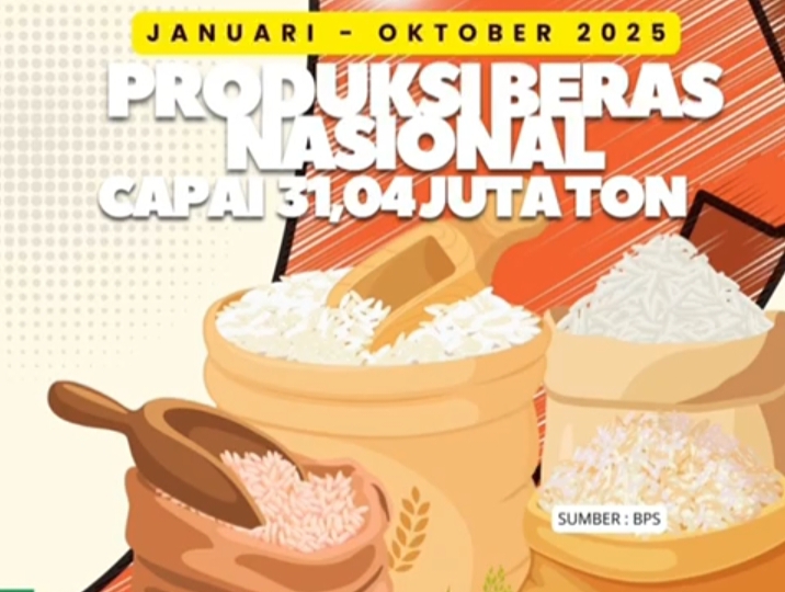 SUARARAKYAT.info|| Jakarta-Produksi padi dan beras Indonesia menunjukkan tren positif sepanjang tahun 2025. Badan Pusat Statistik (BPS) mencatat, dari Januari hingga Oktober 2025, produksi beras nasional diperkirakan mencapai 31,04 juta ton. Angka ini naik signifikan sebesar 12,16 persen dibanding periode yang sama pada tahun 2024.