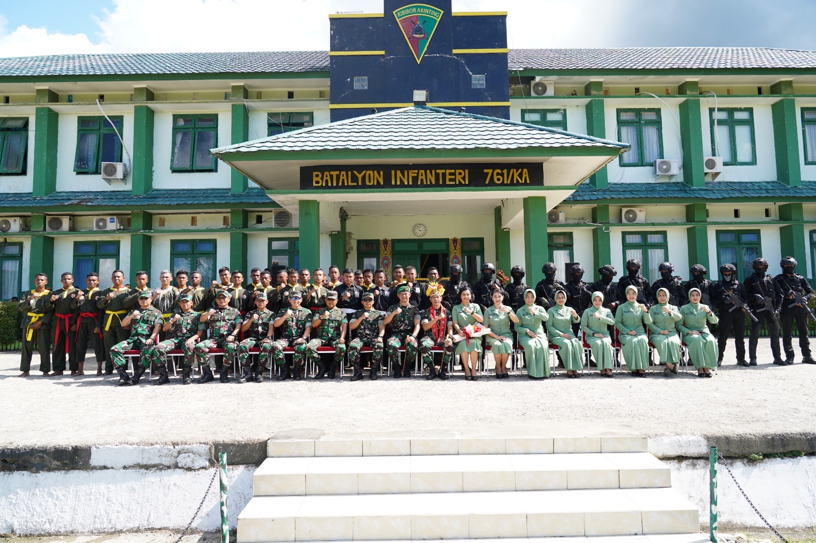 Dalam arahannya, Pangdam memberikan apresiasi tinggi atas kiprah Yonif 761/KA sejak awal berdiri. Menurutnya, prajurit Yonif 761 mampu menunjukkan karya nyata, mulai dari pembinaan teritorial hingga membangun ketahanan pangan di sekitar Batalyon.