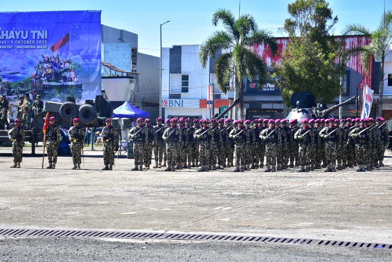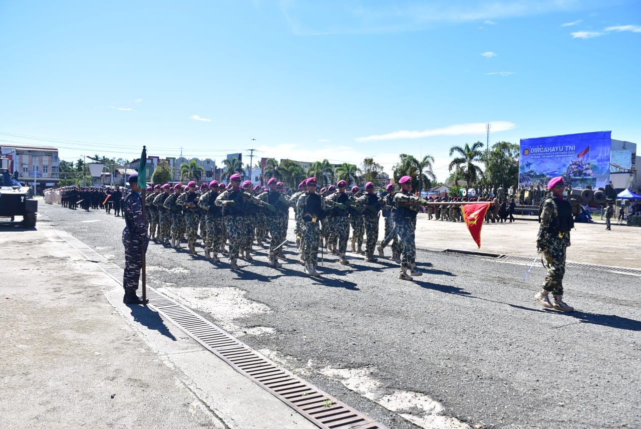 Kabupaten Sorong Papua Barat Daya – Menyambut peringatan (HUT) ke-80 Tentara Nasional Indonesia (TNI) tahun 2025, Wadan Pasmar 3 Brigjen TNI (Mar) Andi Sultan Alimudin, M.Tr.Opsla., M.Han., meninjau langsung pelaksanaan gladi bersih di Alun-Alun Aimas, Jl. Sorong–Aimas, Malawili, Distrik Aimas, Kabupaten Sorong, Papua Barat Daya, Jumat (03/10/2025).