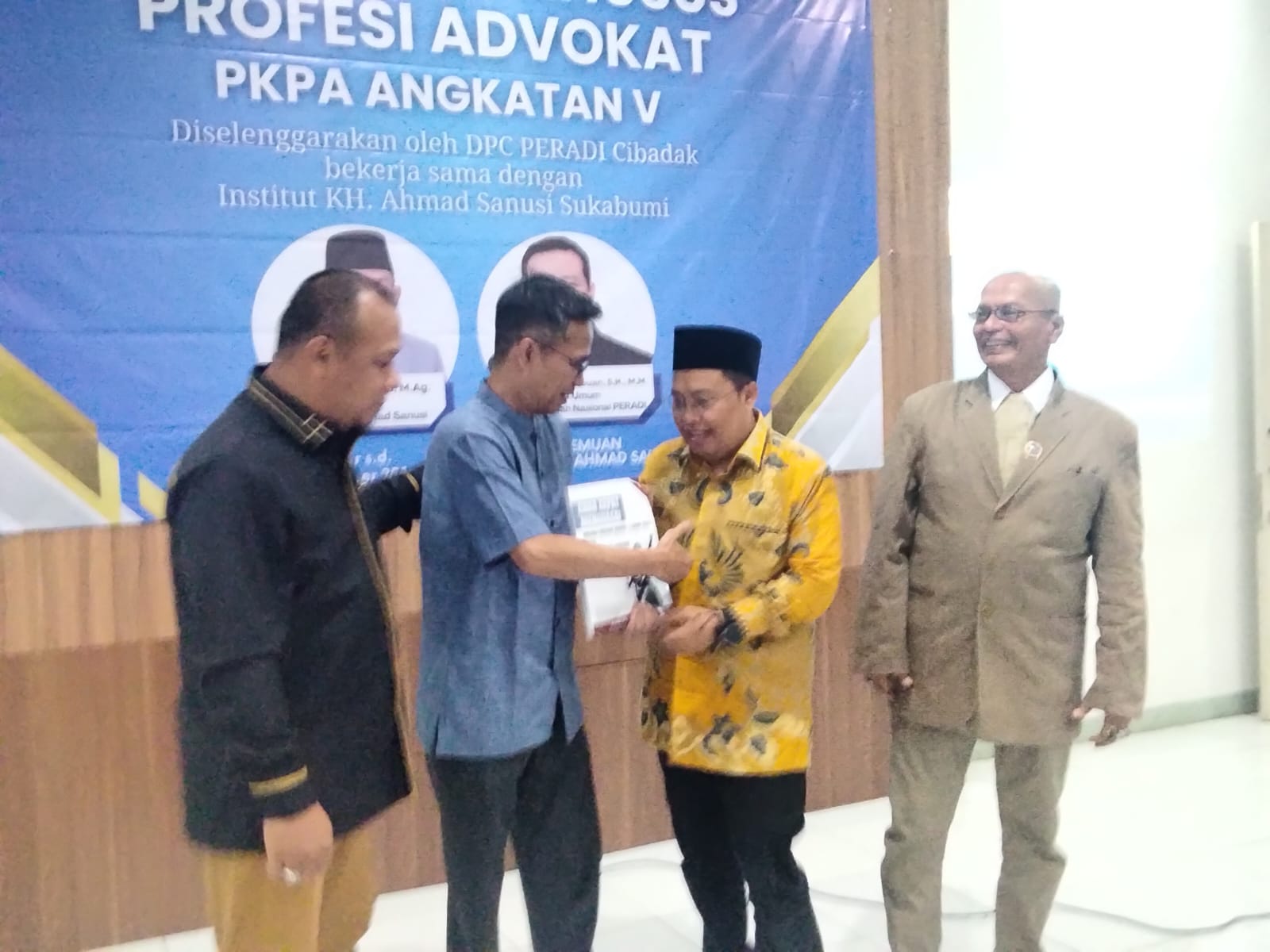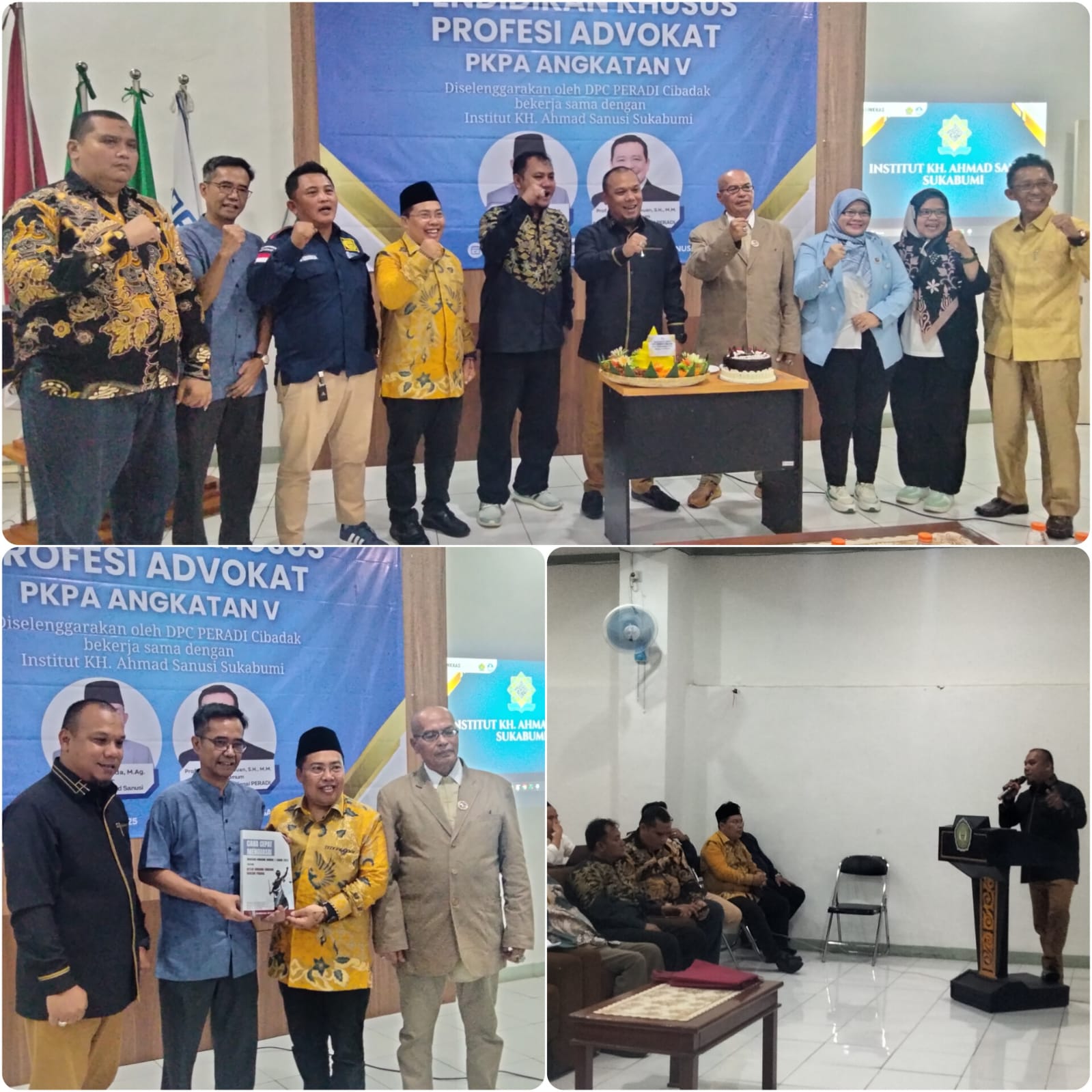 SUARARAKYAT.info|| Sukabumi-Dewan Pimpinan Cabang Perhimpunan Advokat Indonesia (DPC PERADI) Cibadak bekerja sama dengan Institut KH Ahmad Sanusi Sukabumi menggelar Pendidikan Khusus Profesi Advokat (PKPA) Angkatan V dan sekaligus menggelar tasyakuran Milad ke-3 PERADI Cibadak secara bersamaan.