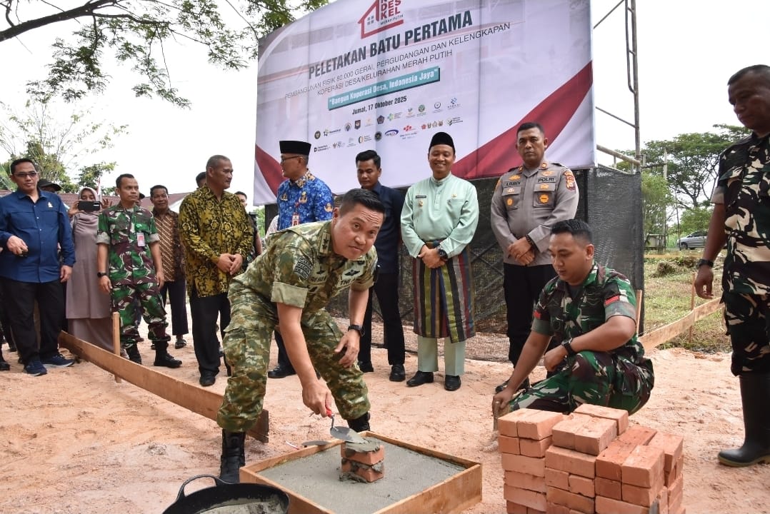 SUARARAKYAT..info||PEKANBARU -Wujud sinergi antara TNI dan Pemerintah kembali terlihat dalam kegiatan peletakan batu pertama (groundbreaking) pembangunan Gerai dan Pergudangan Koperasi Desa Merah Putih di halaman Kantor Camat Payung Sekaki, Kota Pekanbaru. Kegiatan ini menjadi langkah nyata memperkuat perekonomian masyarakat dari tingkat desa melalui pemberdayaan koperasi, Jumat 17/10/25.