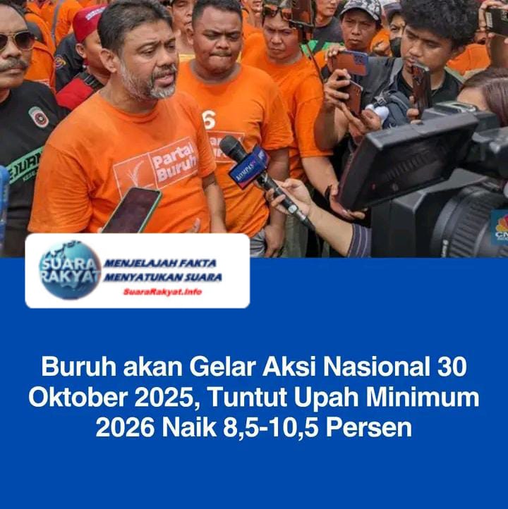 SUARARAKYAT.info||Jakarta — Presiden Konfederasi Serikat Pekerja Indonesia (KSPI), Said Iqbal, menyatakan bahwa buruh dari berbagai daerah di Indonesia akan menggelar aksi bergelombang untuk menuntut kenaikan upah minimum tahun 2026. Aksi tersebut berlangsung sejak 23 Oktober hingga 31 Desember 2025 di 300 kabupaten/kota di 38 provinsi.