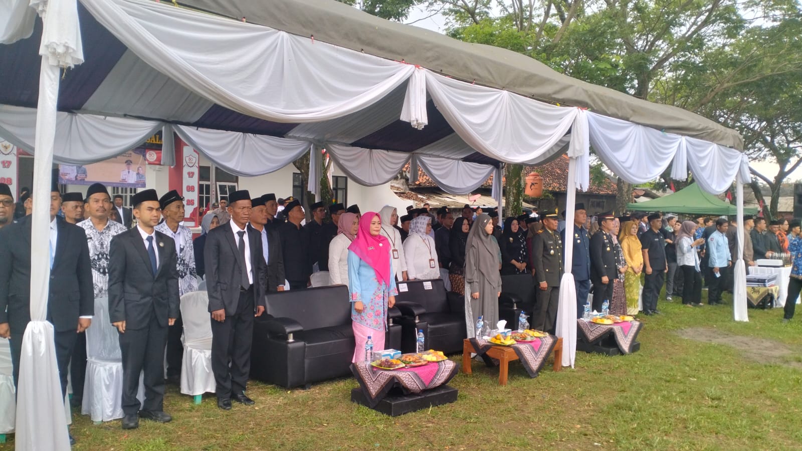Kegiatan berjalan tertib dan penuh antusiasme. Seluruh peserta hadir mengenakan pakaian resmi: TNI/Polri dengan PDU III, ASN dengan PSR dan peci nasional, serta kaum wanita dengan kebaya nasional.