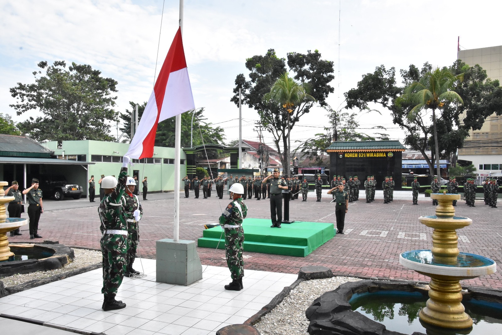 Upacara tersebut juga di hadiri oleh para Kasi Kasrem 031/WB, Dan/Ka Balak Jajaran Korem 031/WB, Prajurit serta PNS Korem 031/WB.