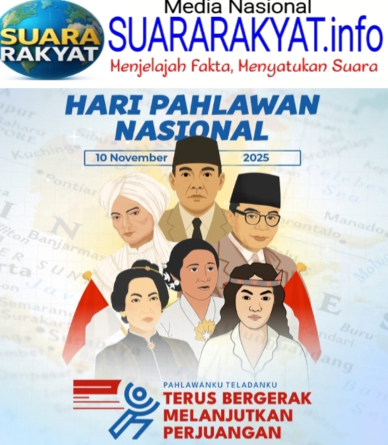 SUARARAKYAT.info|| Sukabumi-Dalam semangat memperingati Hari Pahlawan Nasional yang jatuh pada 10 November 2025, segenap keluarga besar dan jajaran media nasional Suararakyat.info menyampaikan ucapan Selamat Hari Pahlawan 2025.Peringatan ini menjadi momentum penting untuk mengenang jasa para pahlawan bangsa yang telah berkorban jiwa, raga, dan pikiran demi kemerdekaan dan martabat Indonesia di mata dunia.