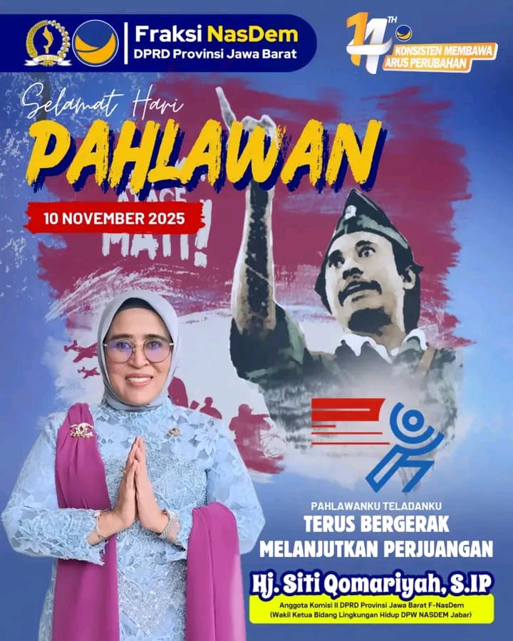 SUARARAKYAT.info|| Cikarang Pusat – Anggota DPRD Provinsi Jawa Barat, Siti Qomariyah, mengajak seluruh masyarakat diarena tarungnya Dapil Jabar IX Kabupaten Bekasi ini, menjadikan peringatan hari Pahlawan Nasional sebagai momentum kebangkitan untuk melanjutkan perjuangan (para pahlawan) yang sudah berjuang merebut Kemerdekaan RI. Hal itu disampaikan bertepatan dengan Hari Pahlawan Nasional yang jatuh pada tanggal 10 November 2025 ini.