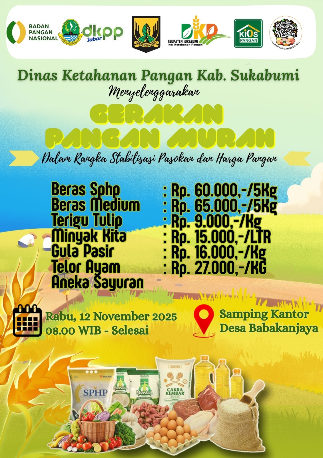 SUARARAKYAT.info||Sukabumi – Antusiasme warga Desa Babakanjaya,kecamatan parungkuda Kabupaten Sukabumi, terlihat luar biasa saat pelaksanaan Gerakan Pangan Murah yang digelar oleh Dinas Ketahanan Pangan Kabupaten Sukabumi bekerja sama dengan Badan Pangan Nasional, DKPP Jawa Barat, serta berbagai mitra lainnya. Kegiatan ini berlangsung pada Rabu,(12/11/2025), bertempat di samping Kantor Desa Babakanjaya, mulai pukul 08.00 WIB hingga selesai.