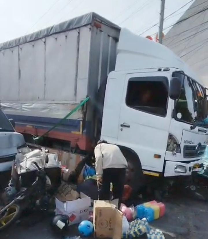 “Truk tersebut menabrak kendaraan Ayla yang sedang berhenti, lalu mendorongnya hingga menghantam kendaraan lainnya di depan. Dampaknya beruntun mengenai mobil dan sepeda motor yang sama-sama menunggu lampu hijau,” ujar Cep Wildan.