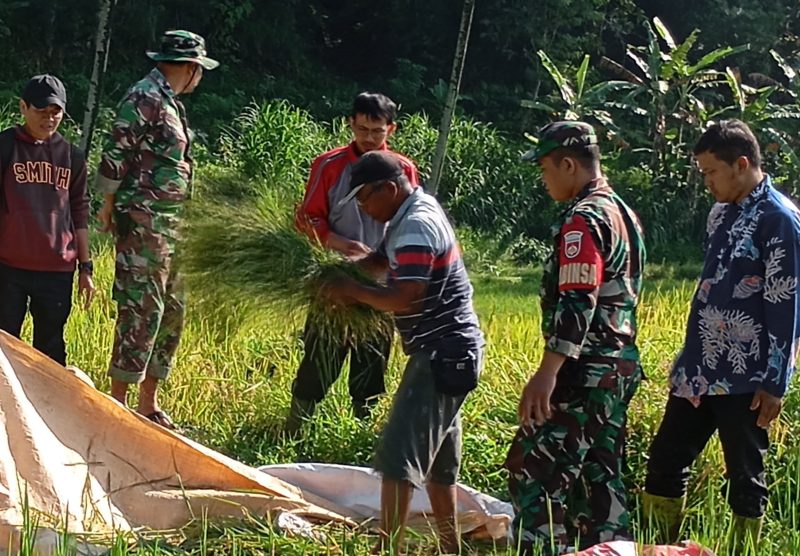 SUARARAKYAT.info|| Boyolali – Babinsa Koramil 05/Ampel Serka Khamdan bersama Dinas Pertanian, BPP, dan PPL turun langsung ke sawah melakukan pengubinan padi di Dukuh Kerep, Desa Ngampon, Kecamatan Ampel, Minggu (30/11/2025).