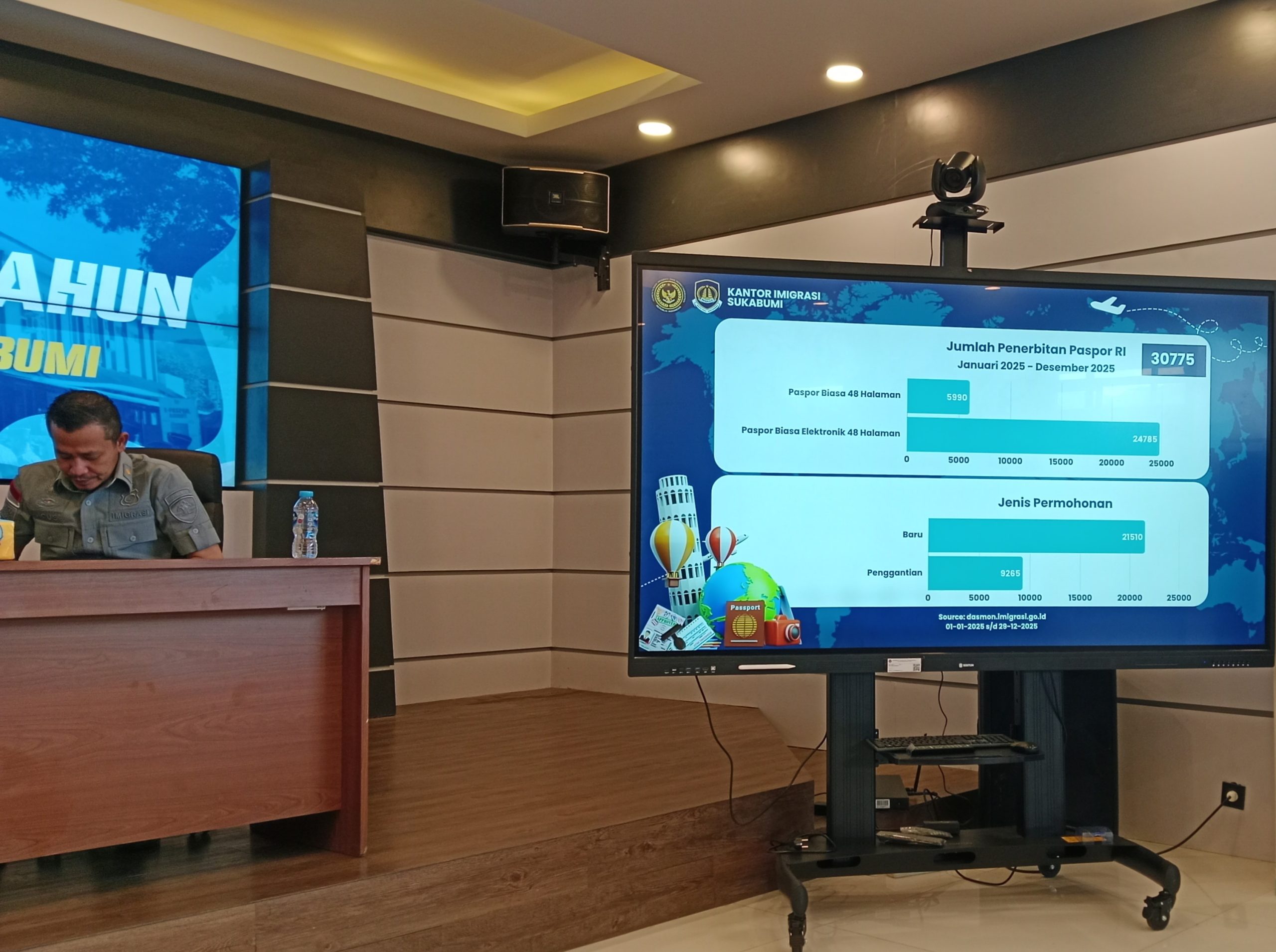 Pemaparan kinerja ini menjadi bentuk akuntabilitas publik atas pelaksanaan tugas dan fungsi keimigrasian sepanjang Januari hingga Desember 2025, mencakup bidang pelayanan dokumen perjalanan, izin tinggal,sosialisasi,peduli masyarakat yang terdampak bencana, peduli lingkungan, serta intelijen dan penindakan keimigrasian.Dalam pemaparannya, Kepala Kantor Imigrasi Henky Kurniawan menyampaikan bahwa sepanjang tahun 2025, Kantor Imigrasi Kelas I Non TPI Sukabumi telah menerbitkan sebanyak 30.775 paspor Republik Indonesia.