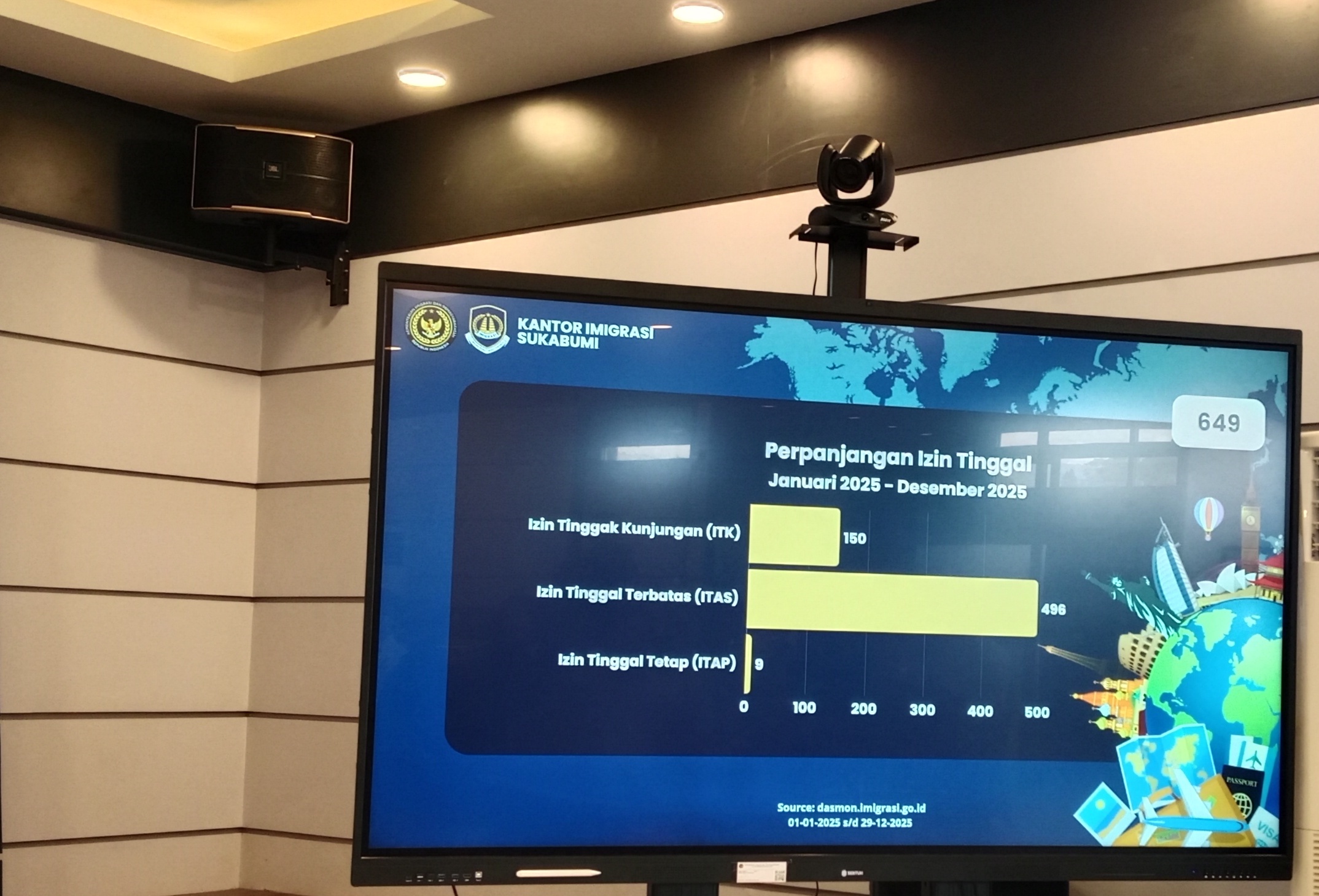 Di bidang perpanjangan izin tinggal, Imigrasi Non TPI Sukabumi juga mencatat total 649 layanan perpanjangan izin tinggal sepanjang tahun 2025. Rinciannya meliputi 150 perpanjangan Izin Tinggal Kunjungan (ITK), 498 perpanjangan Izin Tinggal Terbatas (ITAS), serta sejumlah kecil perpanjangan Izin Tinggal Tetap (ITAP).