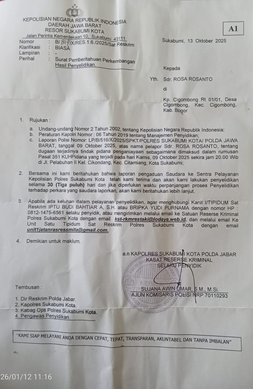 “Sudah hampir tiga bulan. Pelaku belum ditangkap, belum ada tindakan tegas. Kami meminta Propam turun tangan mengevaluasi kinerja POLRES Sukabumi Kota yang saya nilai lalai dan lamban,” tegasnya.Lebih jauh, korban bahkan mengungkapkan dugaan yang mencerminkan rusaknya rasa kepercayaan masyarakat terhadap institusi penegak hukum.